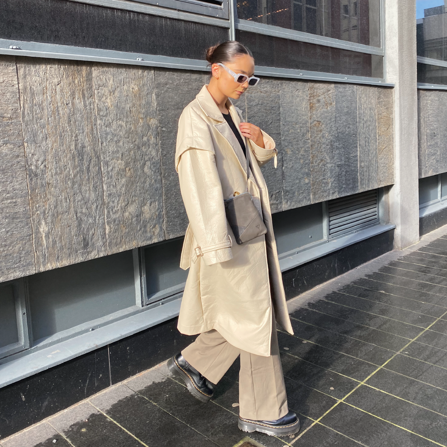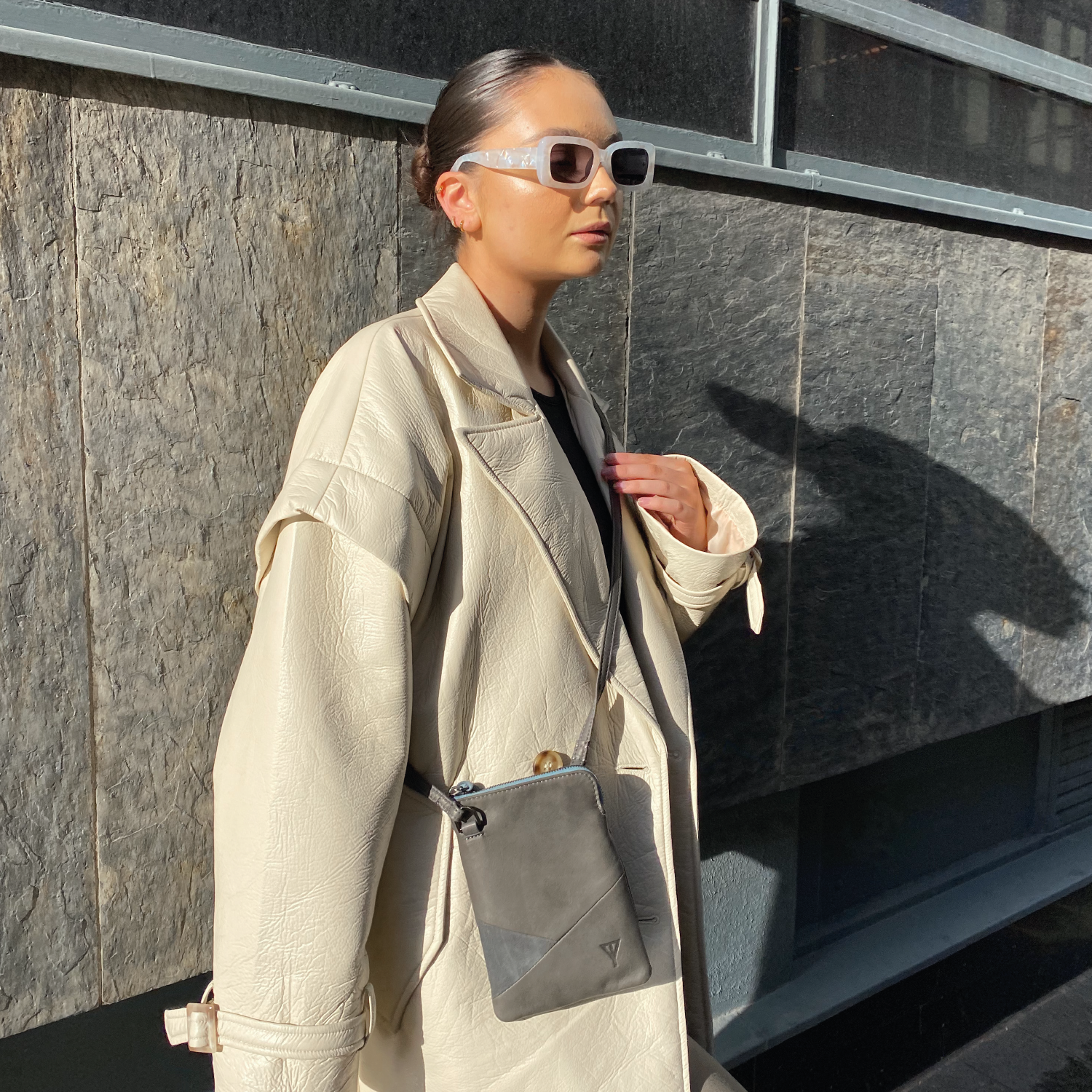 A lightweight, crossbody bag to carry your essentials in style. Doris has been re:imagined, now with a sophisticated suede panel, she’s a minimal style dream. This reimagined version of Doris not only looks beautiful but it helps us in our journey towards being as sustainable as possible by helping to reduce waste during production. The smaller panels allow us to get more out of each piece of leather and take more control of our impact.