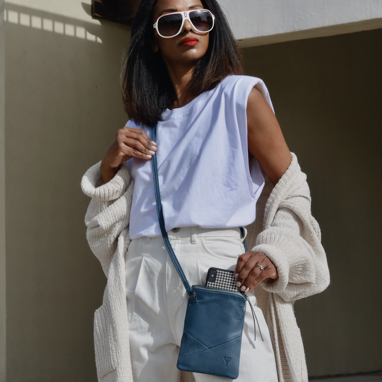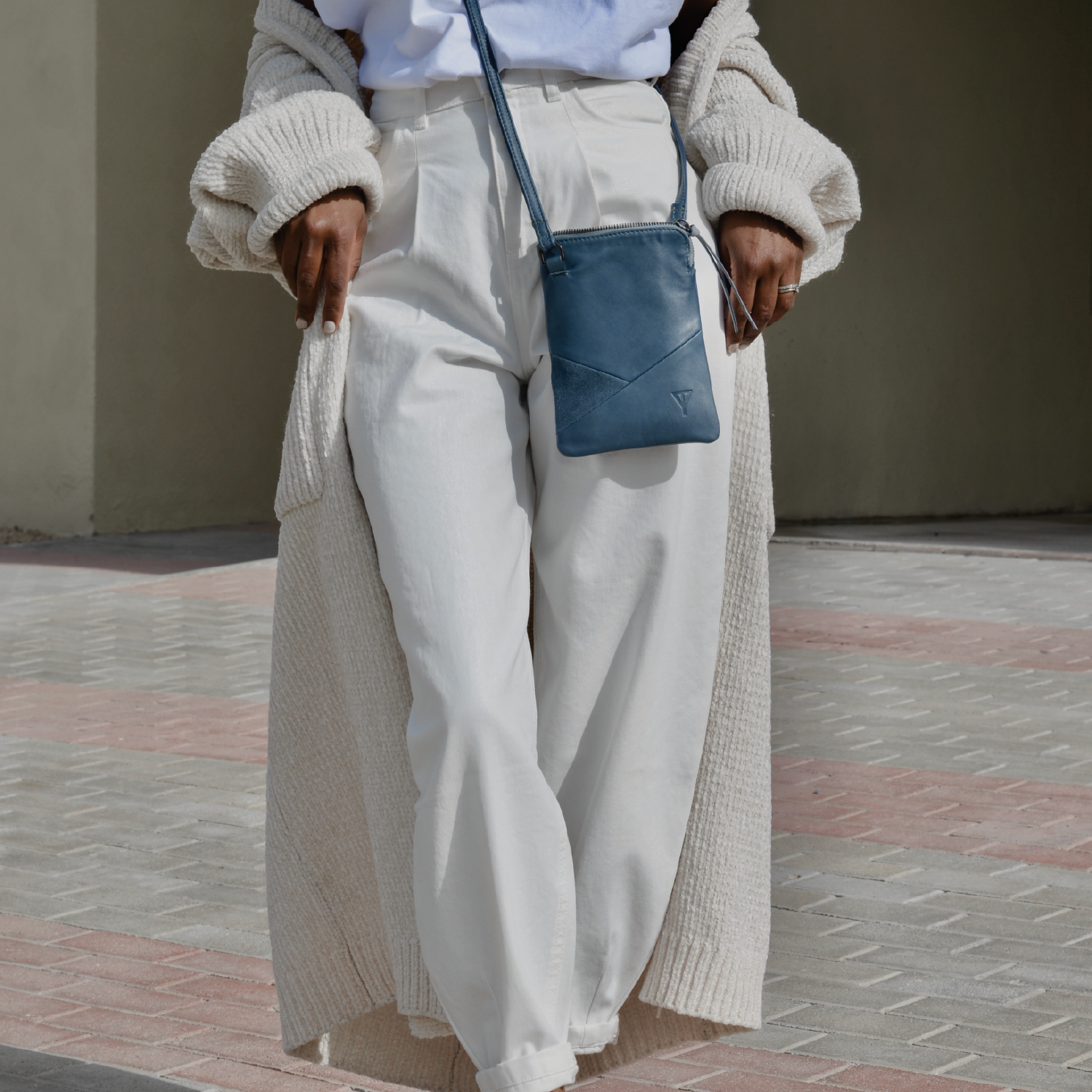 - Worn as crossbody bag