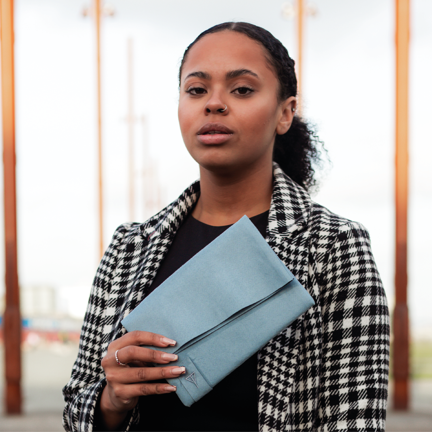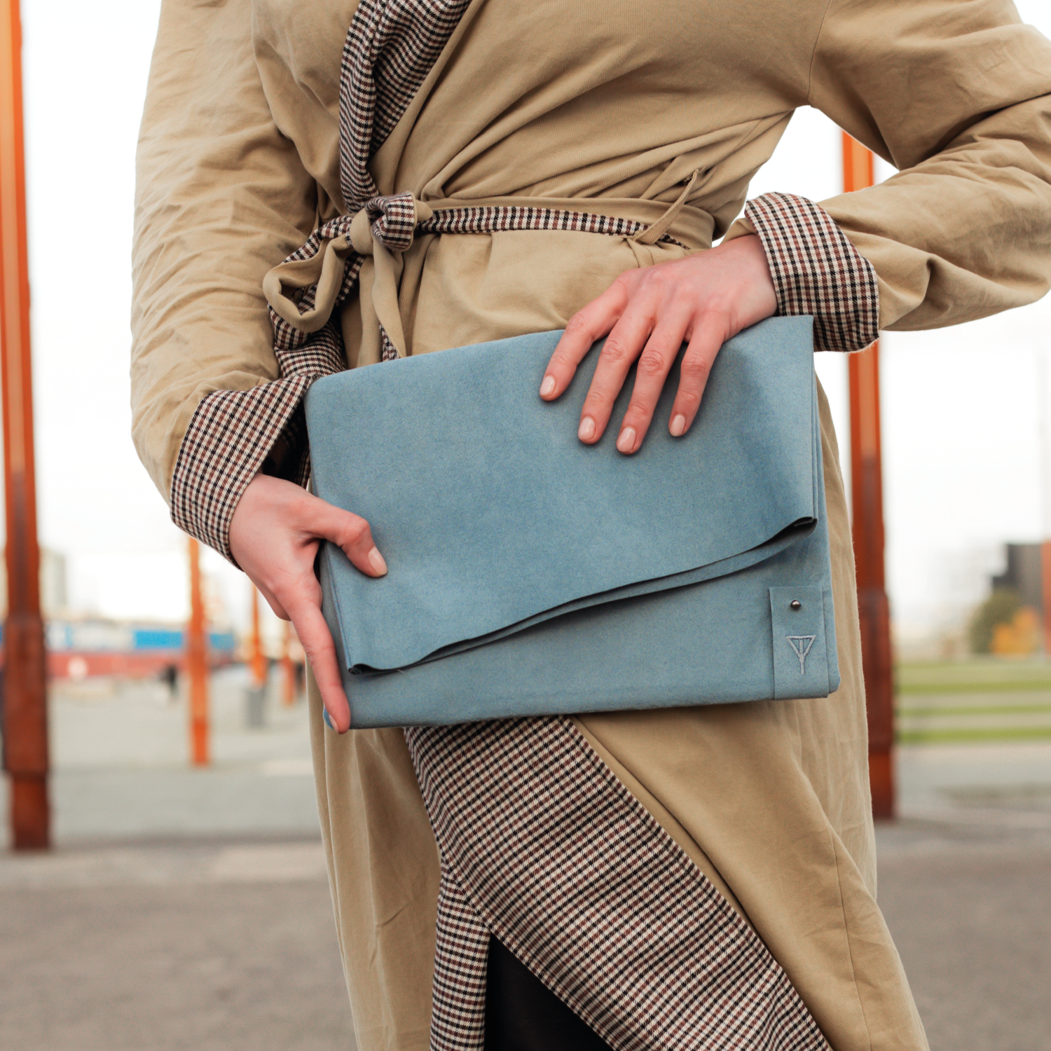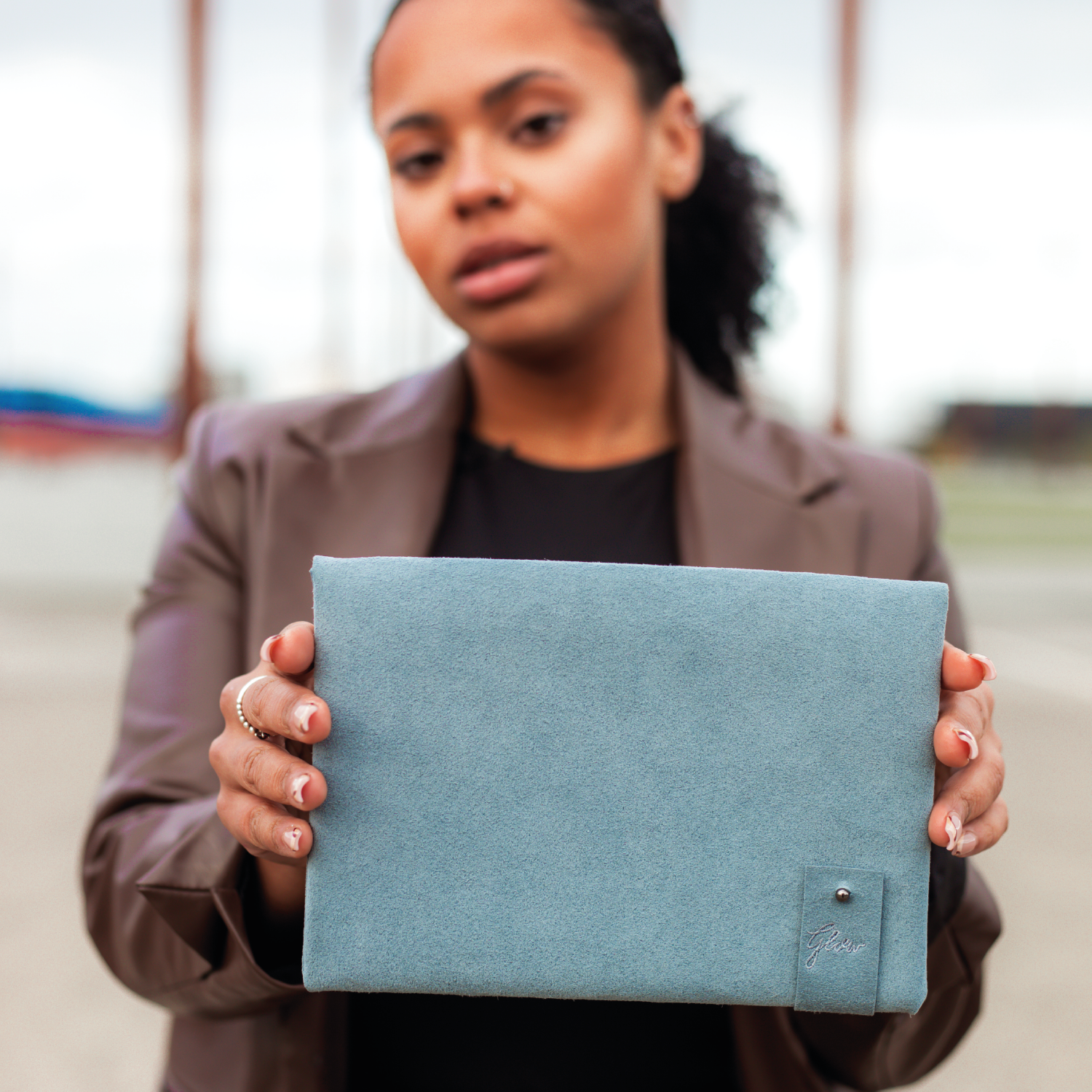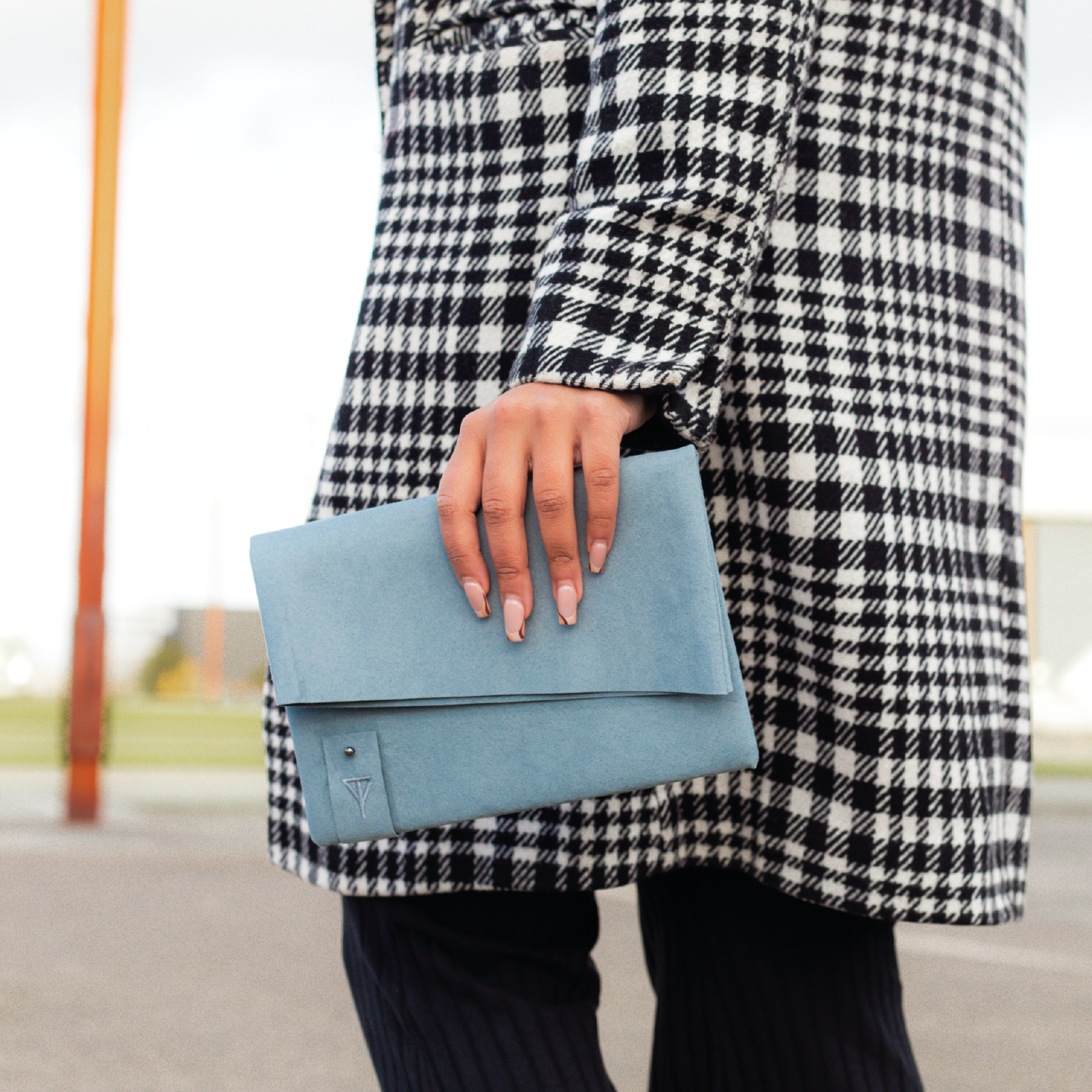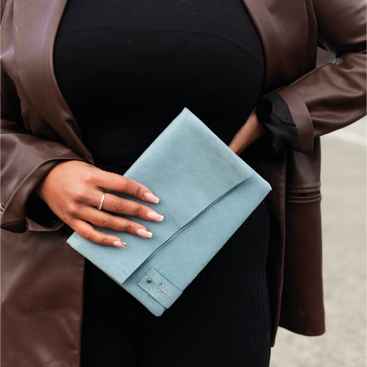 Handmade in Northern Ireland, this clutch is made from Alcantara and lined with a cotton blend fabric also made in Northern Ireland. The branding is a minimal embroidered tab with the Taylor Yates logo on the front and the GlowNI logo on the back.