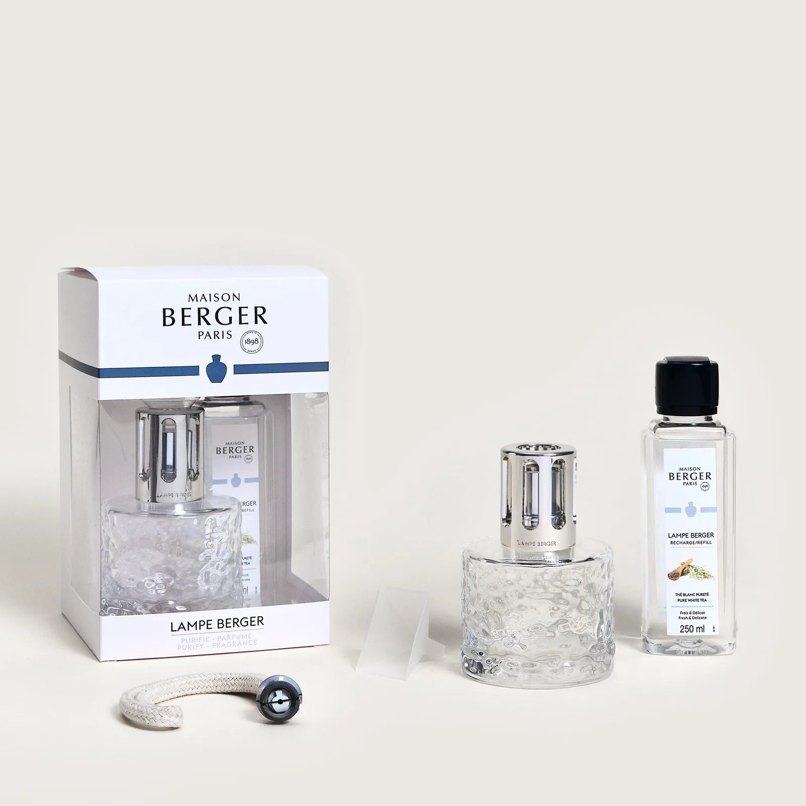 The Mirage Lamp Berger Gift Pack, hailing from the Mirage collection, imbues your home with an ethereal elegance and modern design. This catalytic lamp, showcasing a rounded shape and the distinctive texture of the Gravity lamp, adds an extra layer of sophistication to your space.